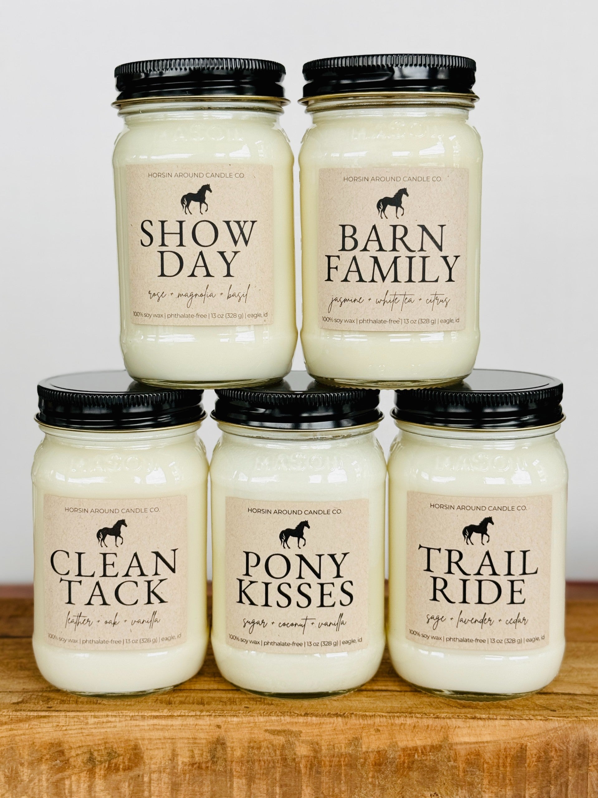 Be the talk of the barn with these Equestrian-themed large mason jar candles!